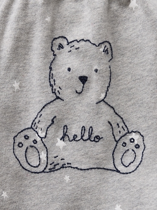 - Embroidered Brannan Bear graphics at bodysuit, hat, bib, and bag.