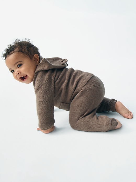 - Hooded neckline with bear ear appliques at top.