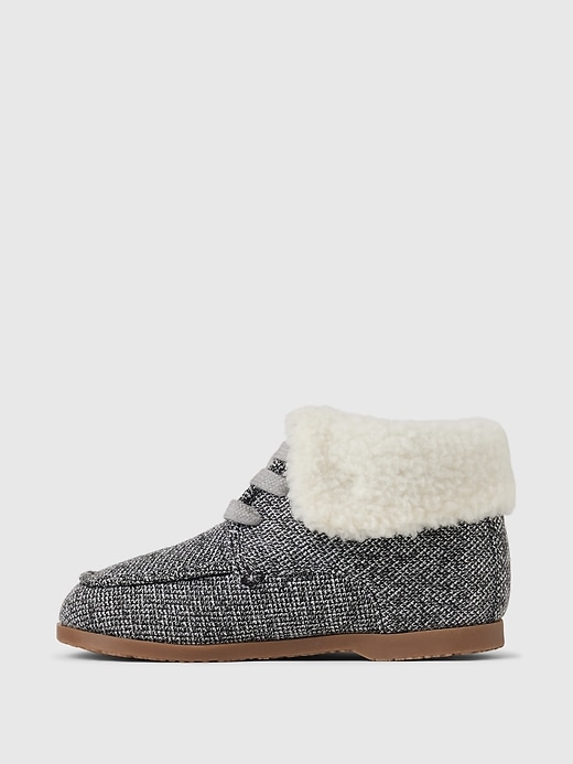 - These boots are made with a vegan suede or knit upper and cozy sherpa lining.
