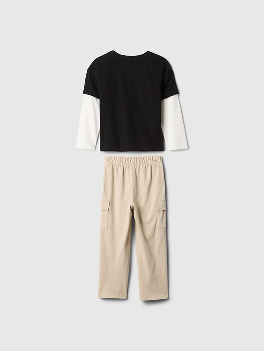 - Soft cotton T-shirt and cargo pants set.
