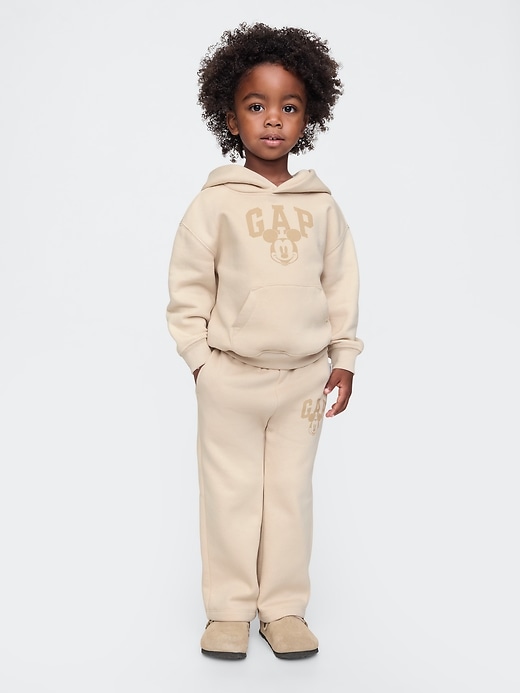 - Gap arch logo with Disney Mickey Mouse graphic at thigh.