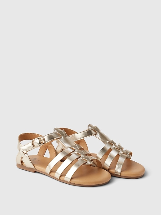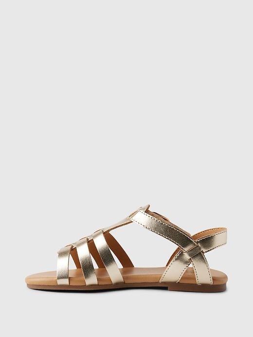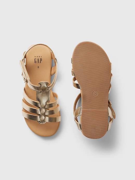 • These sandals are made with a metallic faux leather upper.