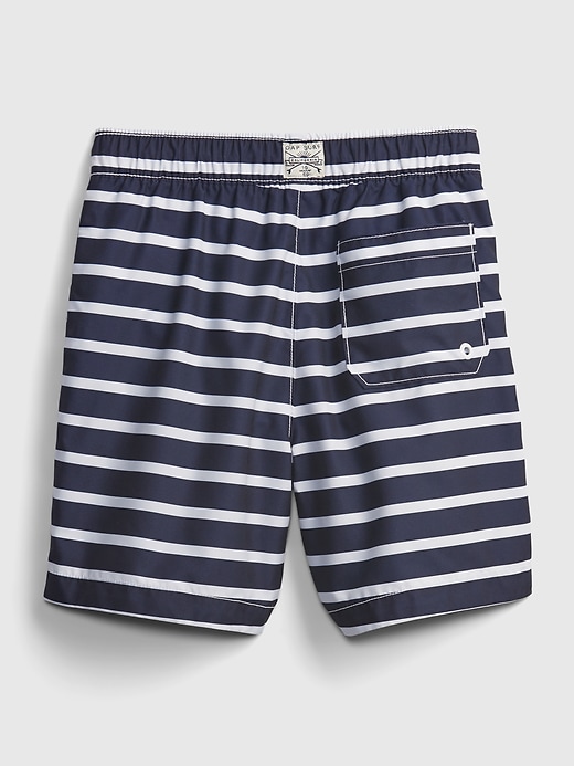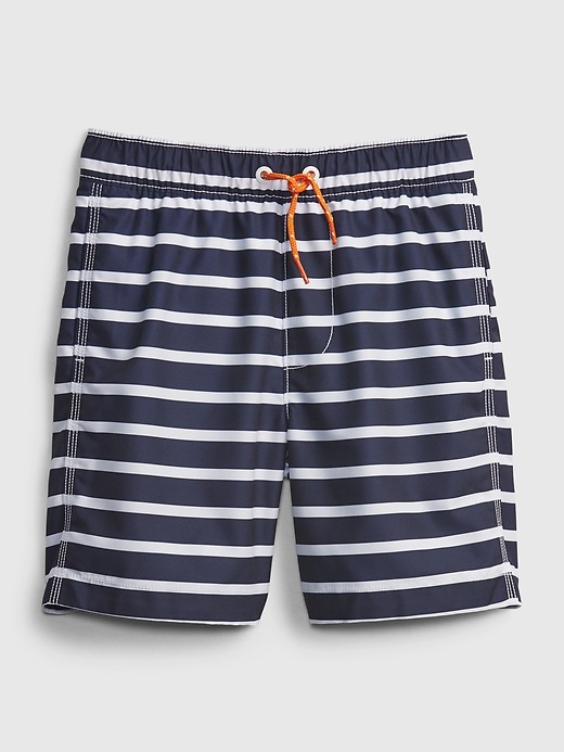 - These swim trunks are made with 100% recycled polyester. Using recycled materials helps to conserve resources and reduce waste.