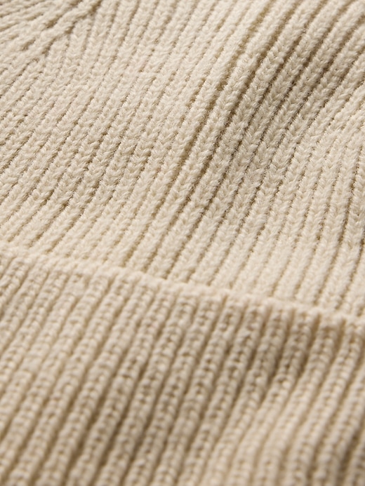 • Soft ribbed knit beanie.