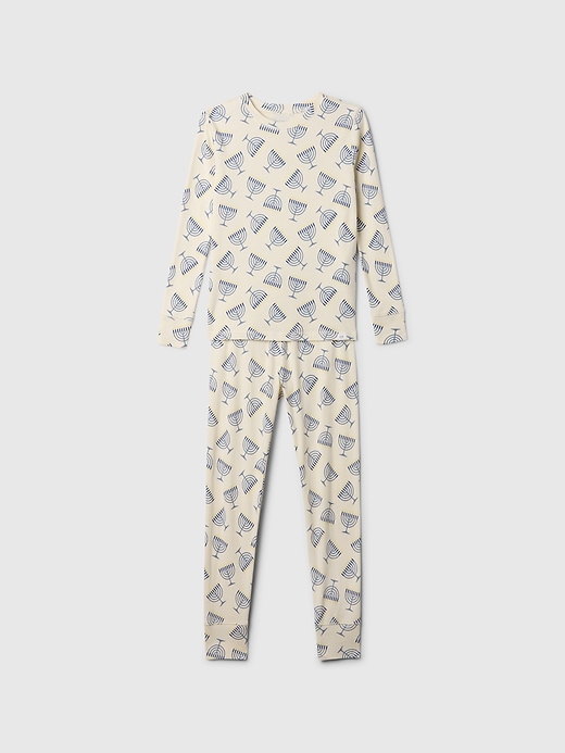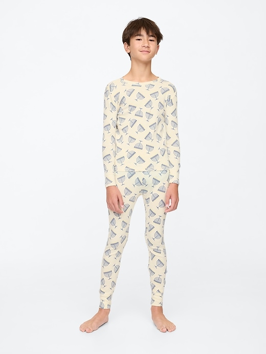 • Soft organic cotton pajama set with a cozy brushed interior.
