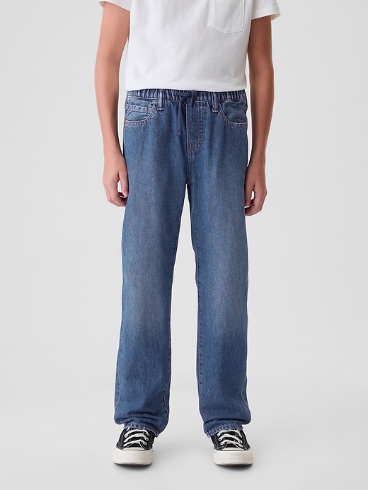 - Authentic, no-stretch pull-on denim jeans.