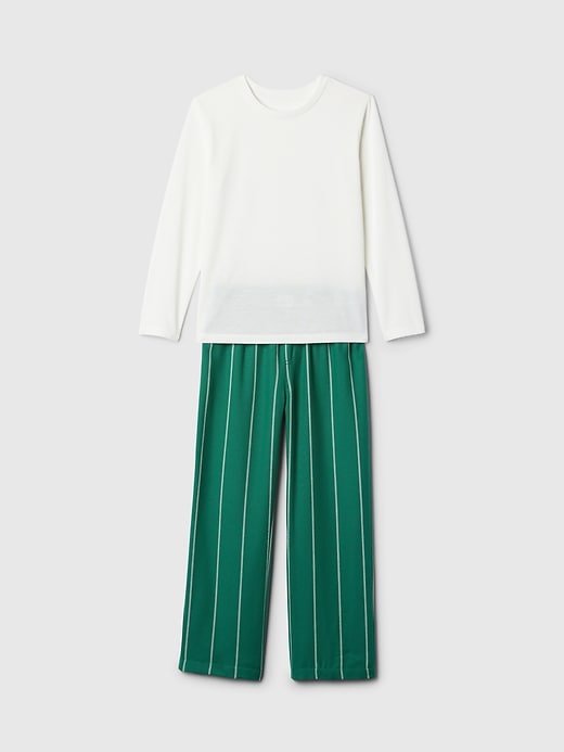- This PJ set is made with 100% recycled polyester. Compared to virgin materials, using recycled materials helps to reduce resource use and waste.