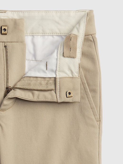 • Button at waist (sizes 4-8 have a hook & bar closure beneath faux snap for easy on and off), zip fly.