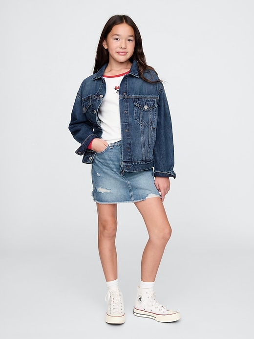 - More Sustainable Cotton: This denim jacket is made with 5% recycled cotton. Compared to virgin materials, using recycled materials helps to reduce resource use and waste.