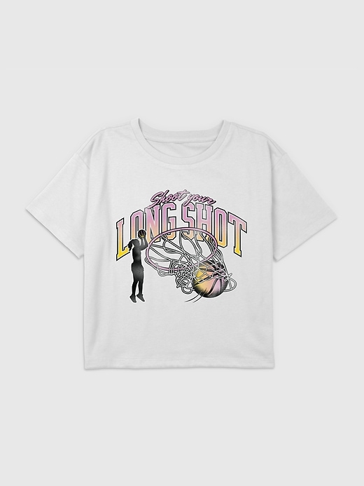 Kids Basketball Long Shot Graphic Boxy Crop Tee