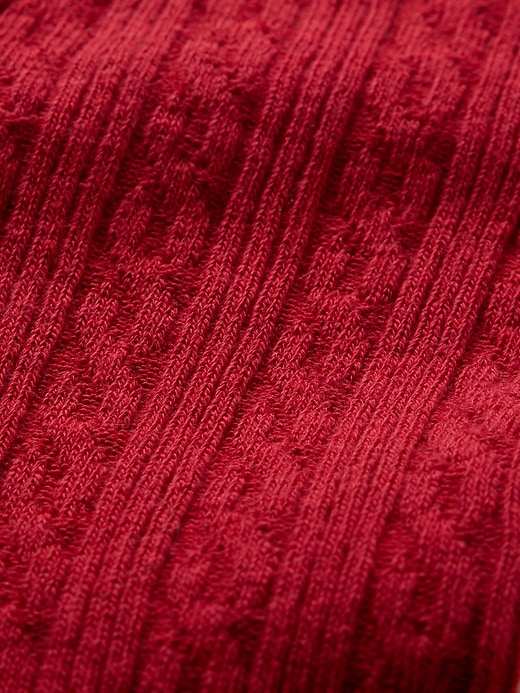 - Soft, stretch cable-knit tights.