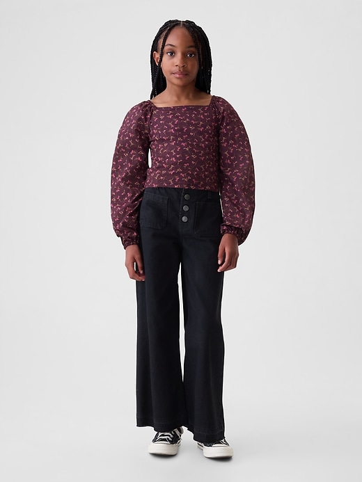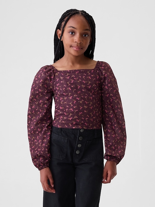 - Long puff sleeves with elasticized cuffs.