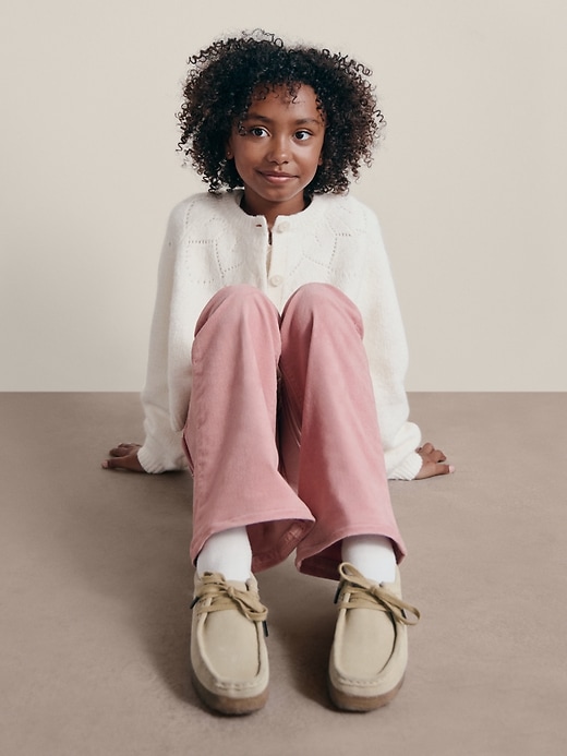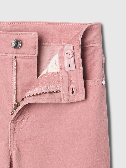 • Button at center front (sizes 4-8 have a hook & bar closure beneath faux snap for easy on and off), zip fly.