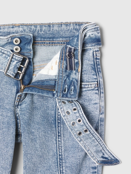 - Double button closure at waist (sizes 4-8 have a hook & bar closure beneath faux snap for easy on and off), zip fly with detachable belt.