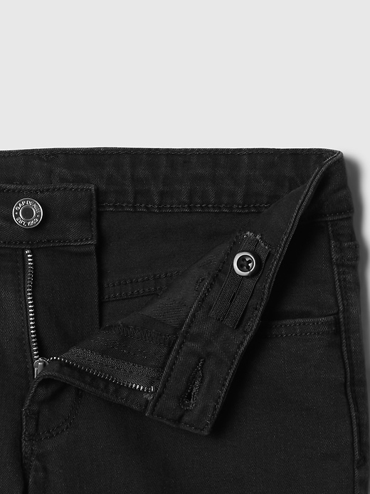 - Button at center front (sizes 4-8 have a hook & bar closure beneath faux snap for easy on and off), zip fly.