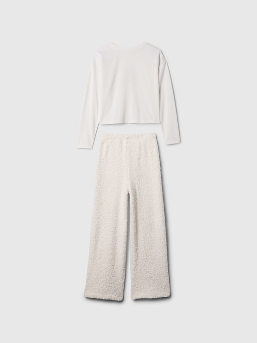 - This PJ set is made with 100% recycled polyester. Compared to virgin materials, using recycled materials helps to reduce resource use and waste.
