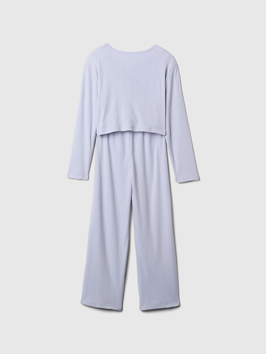 - This PJ set is made with 100% recycled polyester. Compared to virgin materials, using recycled materials helps to reduce resource use and waste.