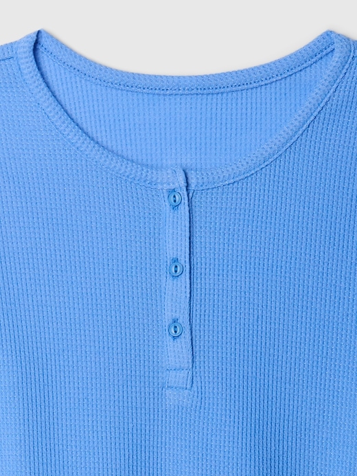 - Soft waffle-knit pajama top and pants set.
