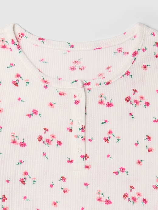 - Soft waffle-knit pajama top and pants set.