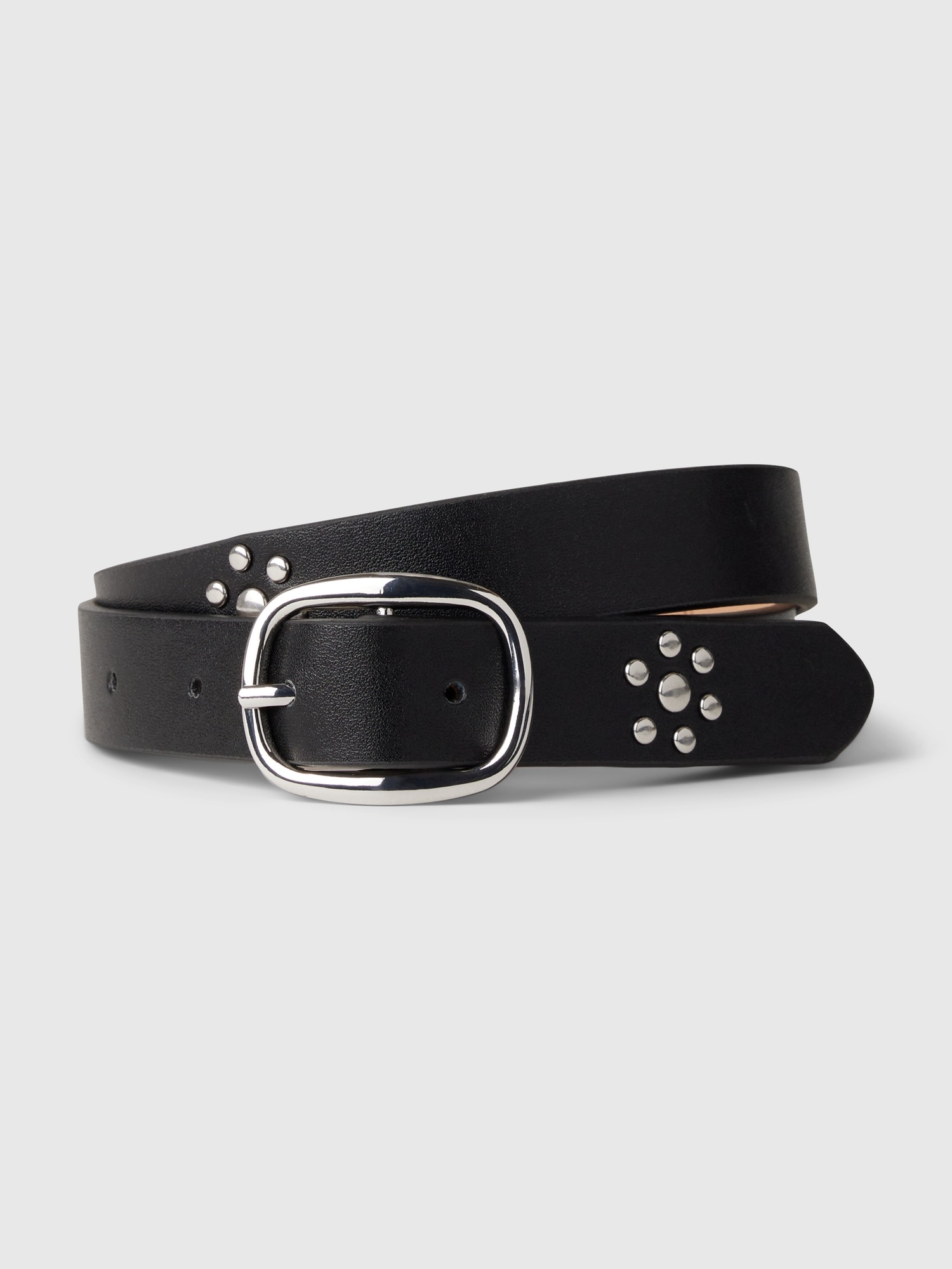 - Smooth vegan leather belt.
