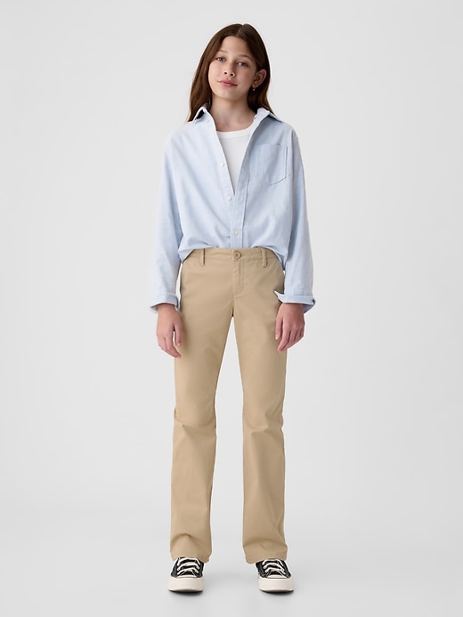 - Button at center front (sizes 4-8 have a hook & bar closure beneath faux button for easy on and off), zip fly.
