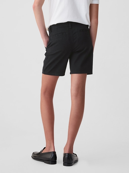 - Soft woven knit uniform midi shorts.
