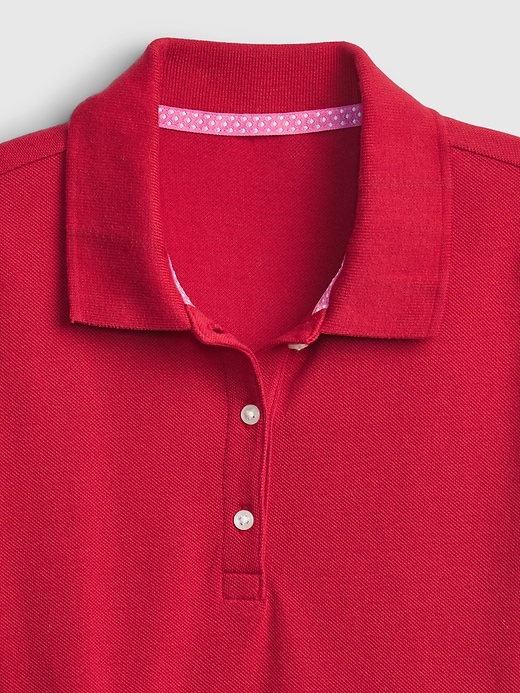 - Soft woven knit uniform polo dress.