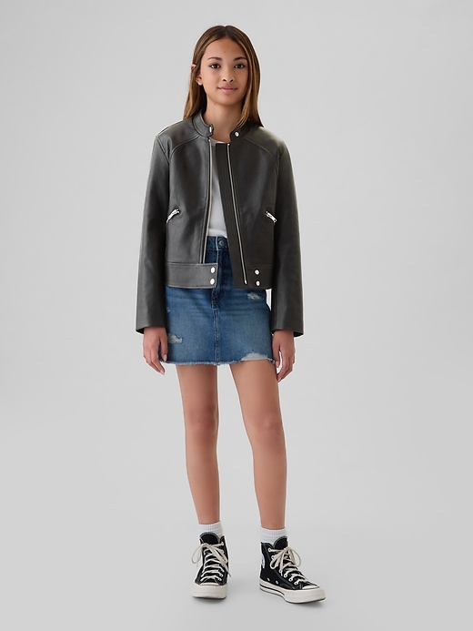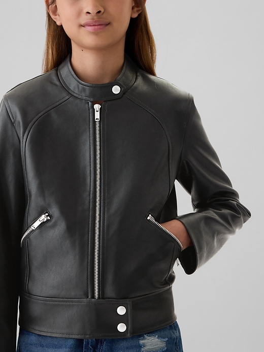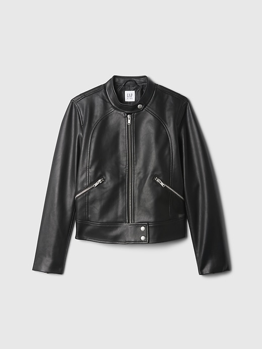 - Vegan leather moto jacket.