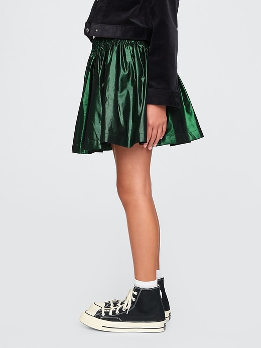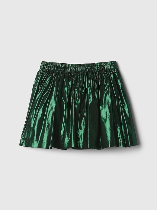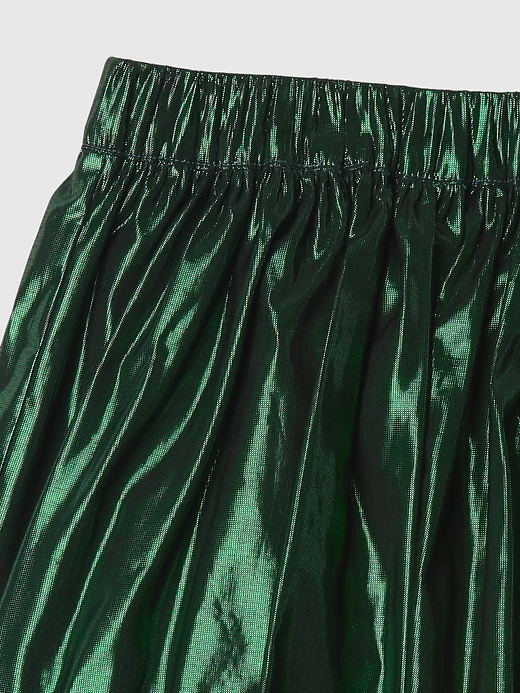 - Soft metallic pleated skirt.