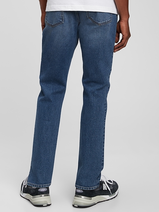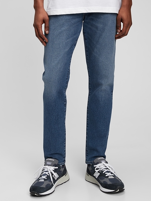- Look: A classic five-pocket jean in a dark indigo wash.