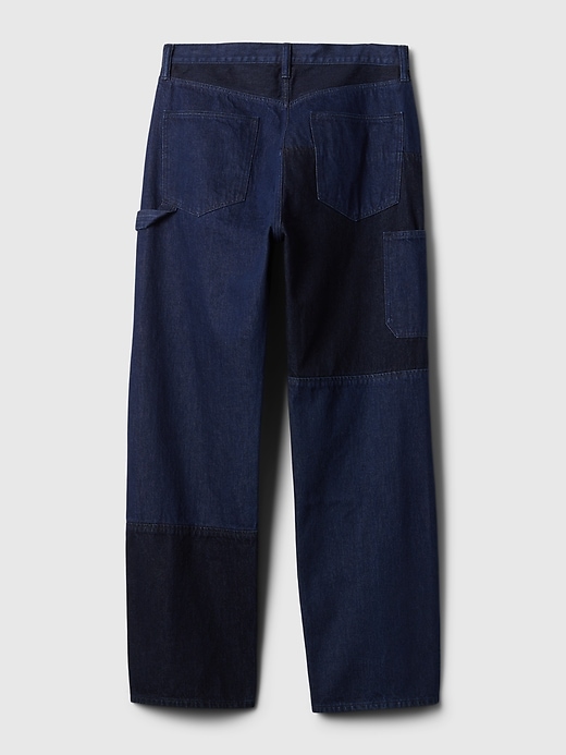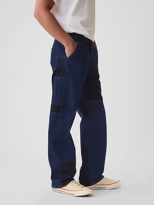 - Look: A classic five-pocket jean in a patchwork denim style.