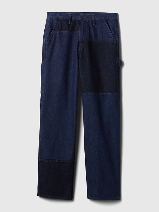 - Details: Zip fly & five-pocket styling. Allover patchwork detailing.