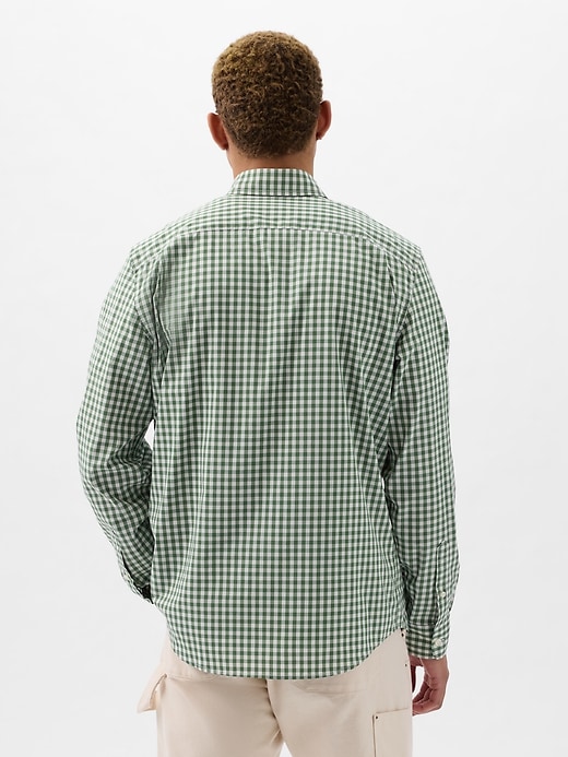 • Breathable stretch poplin made with COOLMAX™ moisture-wicking, quick-drying technology and EcoMade fiber, which comes from 100% recycled materials.