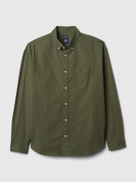 - Smooth garment-dyed cotton oversized Oxford shirt.