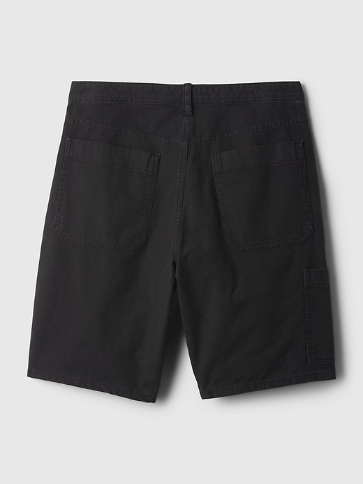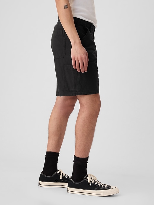 - Look: Five-pocket shorts in a medium wash with carpenter detailing.