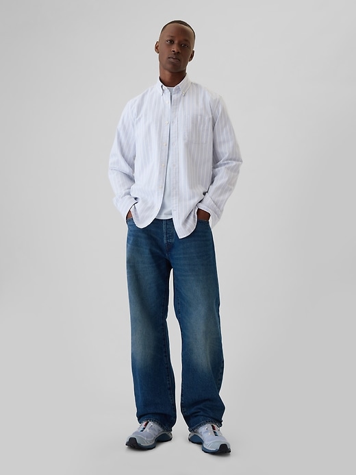 • Model is 6’2″/188cm, wearing a regular Standard Fit Gap size M.