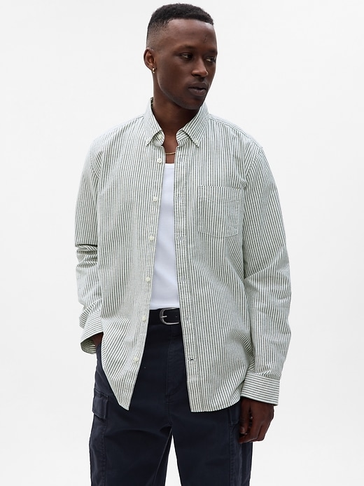 - Smooth woven stretch cotton Oxford shirt.
