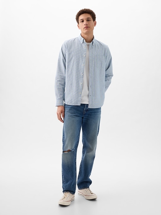- Model is 6’2″/188cm, wearing a regular Standard Fit Gap size M.