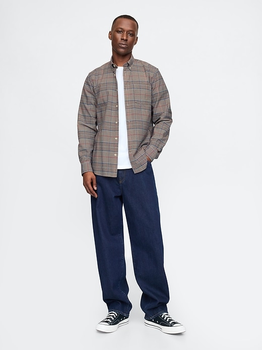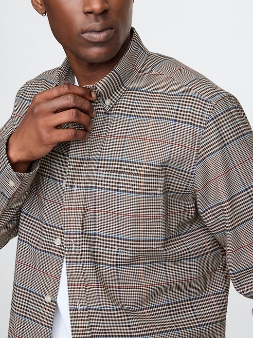 - Smooth woven stretch cotton Oxford shirt.