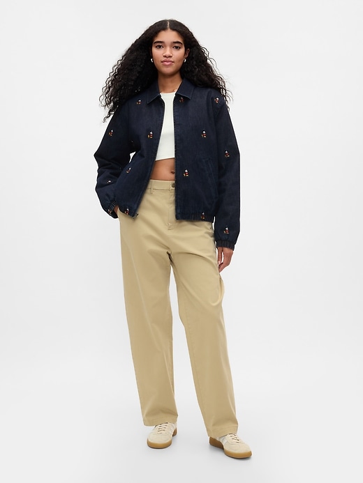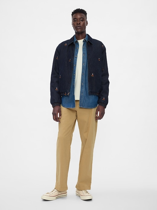 - Authentic, no-stretch denim bomber jacket.