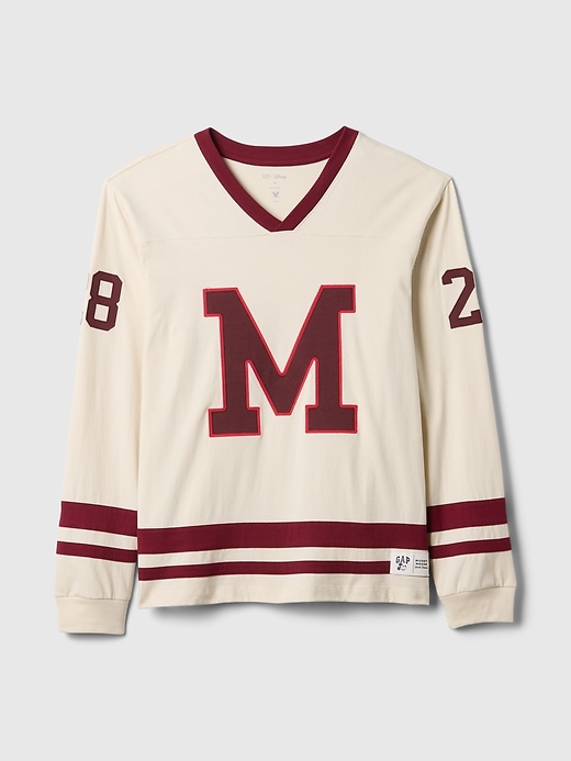 - Disney letterman-style “M” logo and Mickey Mouse graphic at front.