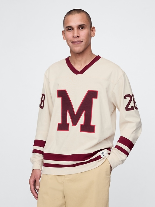 - Varsity pieced stripe and number details.