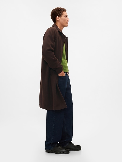 - Soft wool-blend topcoat.