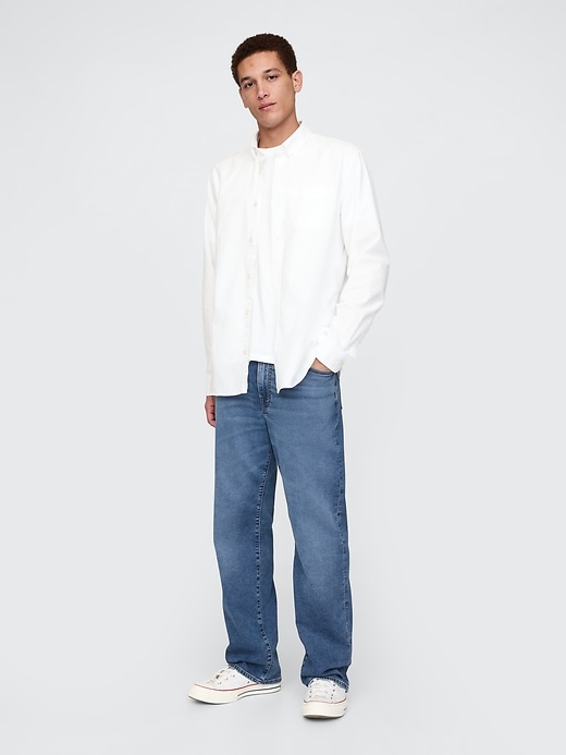 - Fit: Relaxed through the hip & thigh with a loose, straight leg. Made with a longer inseam that stacks at your shoes.