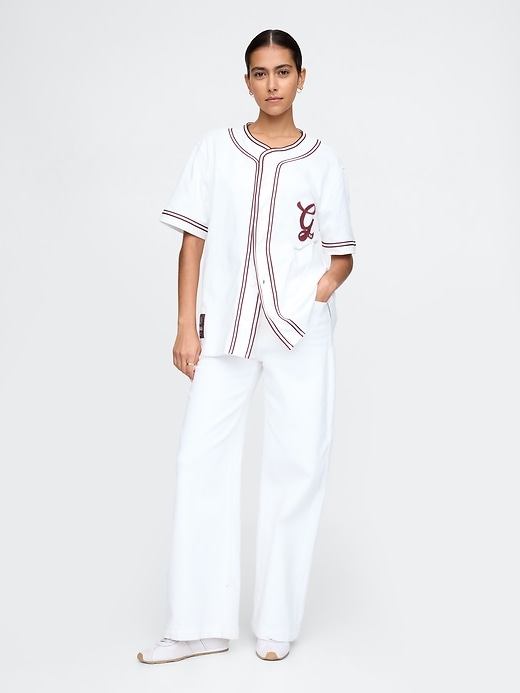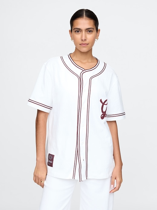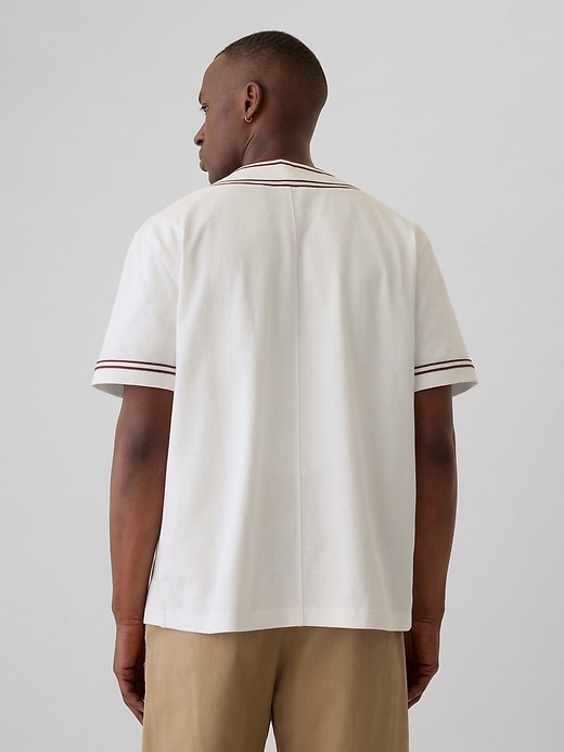 • Gap letterman ‘G’ at chest and allover athletic stripe detailing.