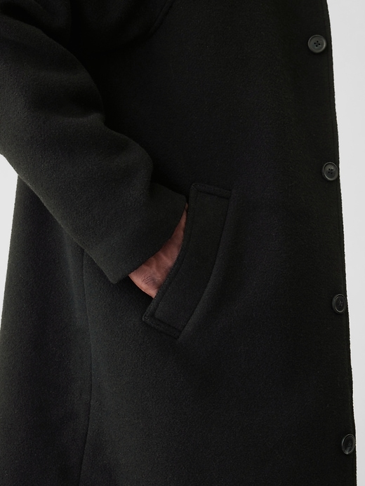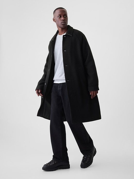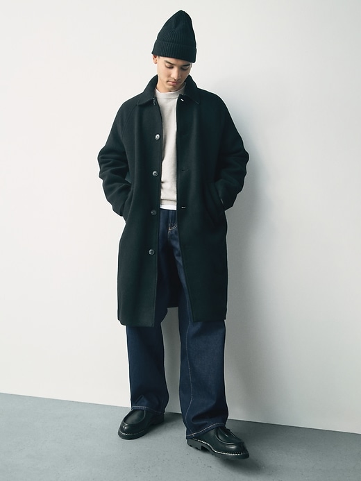• These topcoat is made with 50% recycled wool. Compared to virgin materials, using recycled materials helps to reduce resource use and waste.