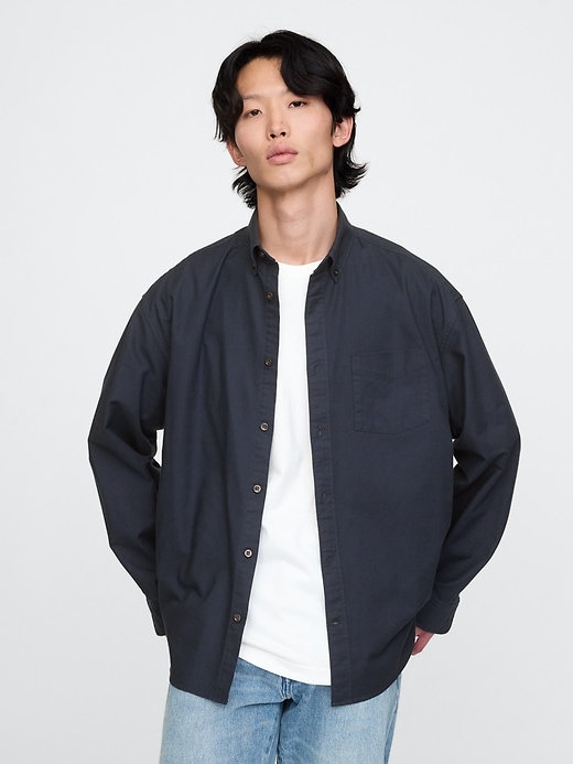 - Smooth woven stretch cotton, oversized Oxford shirt.