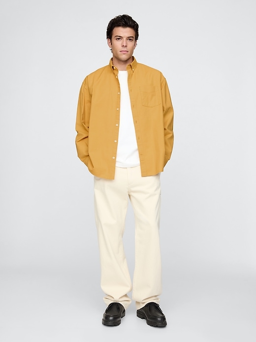 • Smooth woven stretch cotton, oversized Oxford shirt.