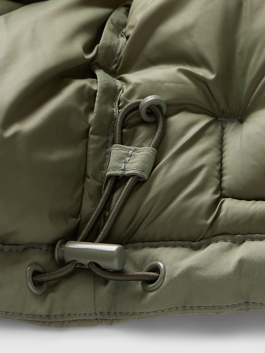 - This puffer vest is made with 100% recycled nylon. Compared to virgin materials, using recycled materials helps to reduce resource use and waste.