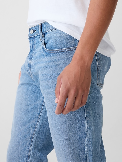 - Look: A classic five-pocket jean in a light indigo wash.